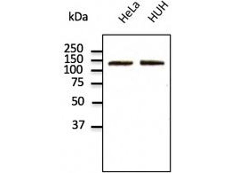 - Detects endogenous levels of total N-cadherin protein by Western blot in the whole cell lysates (COS-7, HeLa, HUH and Hepa-6).