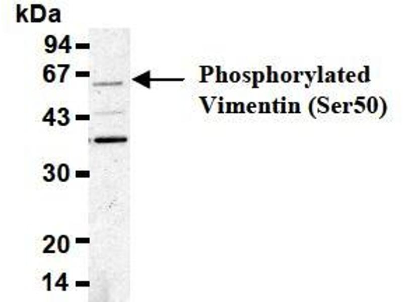 - This antibody reacts with vimentin phosphorylated at Ser50.