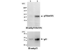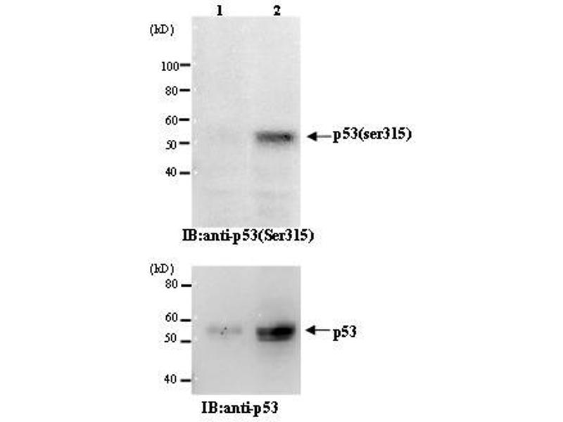 P53 mutants are found in more than half of human cancers and ar e considered as the most important human cancer related gene. p53 is detected at 53 kDa position by electrophoresis and is composed of 393 amino acids. In the unstressed normal cells the p53 level is low and it is inactive. However, with stress, especially with DNA damage, it is activated to promote arrest of cell cycle and repair of DNA damage, or induction of apoptosis. The functions of p53 are regulated by the phosphorylation of serine and threonine, and the acetylation of lysine at various sites in the molecule. Ser315 is phosphorylated by aurora kinase and cyclin-dependent kinases when cells are subjected to stress such as DNA damage and microtubule disruption by nocodazole Ref. 1-3 . However the effect of the phosphorylation on the function of p53 is largely unknown.Synonyms: Cellular tumor antigen p53, NY-CO-13, Phosphoprotein p53, Tumor suppressor p53