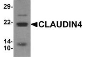 CLAUDIN4 is an integral membrane protein belonging to the claudin family, a family of cellular adhesion molecules that are components of tight junctions. CLAUDIN4 is a component of tight junction strands and may play a role in internal organ development and function during pre- and postnatal life. The CLAUDIN4 gene is deleted in Williams-Beuren syndrome, a neurodevelopmental disorder affecting multiple systems. CLAUDIN4 is frequently overexpressed in ovarian and other epithelial cancers.Synonyms: CPE-R, CPE-Receptor, CPER, CPETR1, Clostridium perfringens enterotoxin receptor, WBSCR8, Williams-Beuren syndrome chromosomal region 8 protein