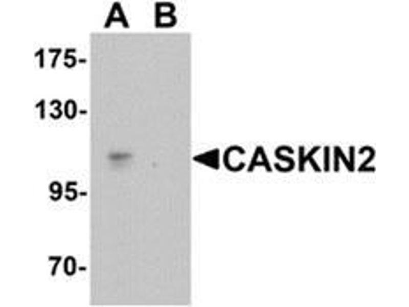 Calcium/calmodulin-dependent serine protein kinase (CASK) is a conserved multi-domain scaffolding protein involved in brain development, synapse formation, and establishment of cell polarity. CASKINs (CASK interacting protein ) interact with CASK and is thought to play a role in CASK function, specifically by coupling CASK to distinct downstream effectors. CASKIN2 is a multidomain protein containing six N-terminal ankyrin repeats, one SH3 domain, and two sterile alpha motif domains followed by a long proline-rich sequence and a short conserved C-terminal domain. It is expressed ubiquitously with highest levels present in fetal and adult liver tissue.Synonyms: CASKIN2, KIAA1139