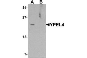 YPEL4 (yippee-like 4) belongs to a family of five yippee-like proteins, all of which localize to the centrosome or mitotic spindle and are widely expressed in both adult and fetal tissue. This localization plus the fact that the family of human YPEL proteins share a high degree of sequence homology across species suggests that these proteins may have a conserved function involved in cell division. YPEL4 is ubiquitously expressed in adult tissues and has been shown to associate with the major vault protein (MVP). It has been suggested that MVP can inhibit YPEL4's ability to activate Elk-1 in the MAPK signaling pathway.Synonyms: Yippee-like 4