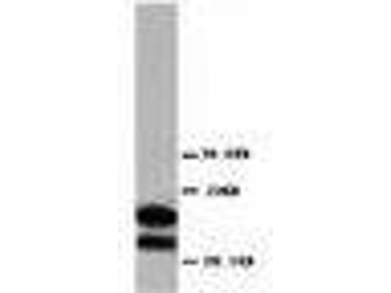 Synthetic peptide corresponding to a sequence at the C-terminal of the human MBP (182-197 aa), identical to the related rat and mouse sequence.