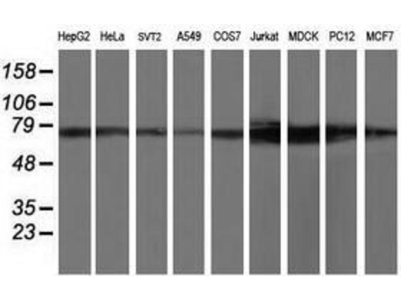 This anti-TTLL12 antibody is a 小鼠 单克隆 antibody detecting TTLL12 in WB, IHC, FACS, IF 和 IHC (p). Suitable for 人, 大鼠, 犬 和 猴.