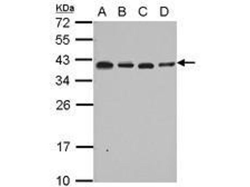 Usage: Suggested starting dilutions are as follows: Western blot: 1:500-1:3000, IHC-Paraffin: 1:100-1:1000, ICC/IF: 1:100-1:1000. Not yet tested in other applications. Optimal working dilutions should be determined experimentally by the end user. -