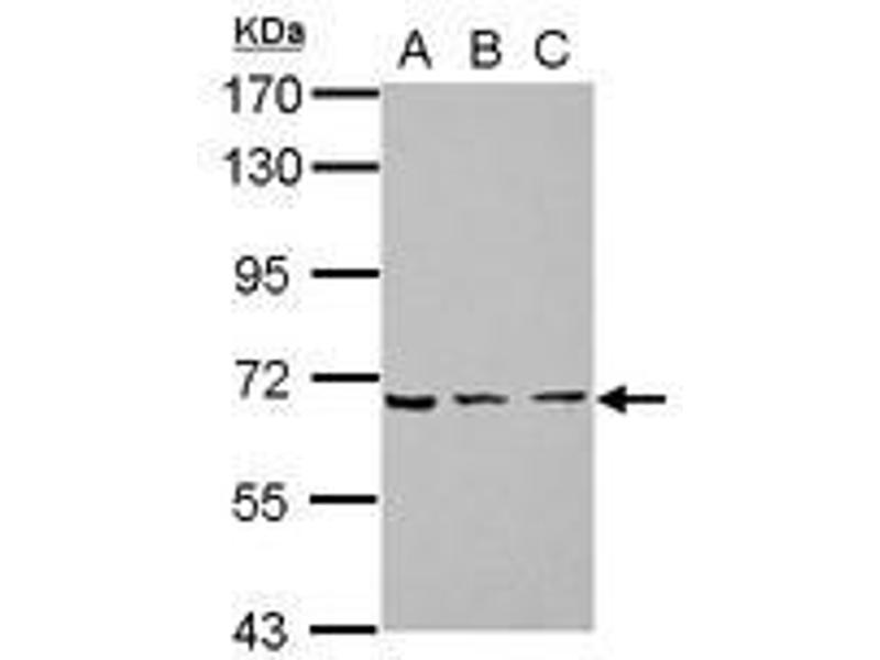 Usage: Suggested starting dilutions are as follows: Western blot: 1:500-1:3000. Not yet tested in other applications. Optimal working dilutions should be determined experimentally by the end user.