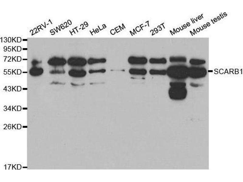 The protein encoded by this gene is a plasma membrane receptor for high density lipoprotein cholesterol (HDL). The encoded protein mediates cholesterol transfer to and from HDL. In addition, this protein is a receptor for hepatitis C virus glycoprotein E2. Two transcript variants encoding different isoforms have been found for this gene.,SCARB1,CD36L1,CLA-1,CLA1,HDLQTL6,SR-BI,SRB1,Cancer,Signal Transduction,Endocrine & Metabolism,Lipid Metabolism,Cholesterol Metabolism,Cardiovascular,Lipids,SCARB1