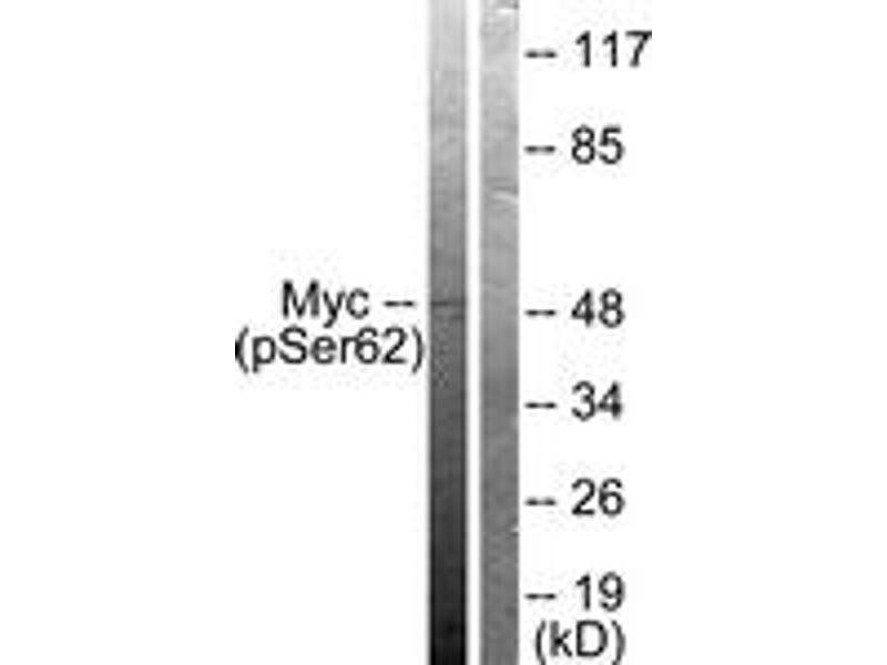 Myc (Phospho-Ser62) Antibody detects endogenous levels of Myc only when phosphorylated at Ser62.