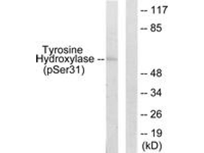 Tyr Hydroxylase (Phospho-Ser31) Antibody detects endogenous levels of Tyr Hydroxylase only when phosphorylated at Ser31.