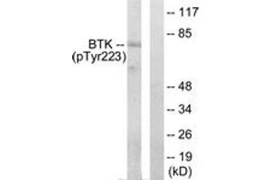 BTK (Phospho-Tyr223) Antibody detects endogenous levels of BTK only when phosphorylated at Tyr223.