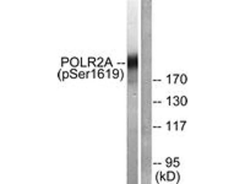 POLR2A (Phospho-Ser1619) Antibody detects endogenous levels of POLR2A only when phosphorylated at Ser1619.