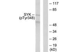 SYK (Phospho-Tyr348) Antibody detects endogenous levels of SYK only when phosphorylated at Tyr348.