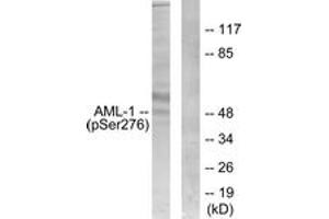 AML1 (Phospho-Ser276) Antibody detects endogenous levels of AML1 only when phosphorylated at Ser276.