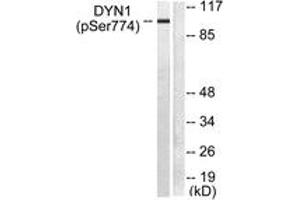 Dynamin-1 (Phospho-Ser774) Antibody detects endogenous levels of Dynamin-1 only when phosphorylated at Ser774.