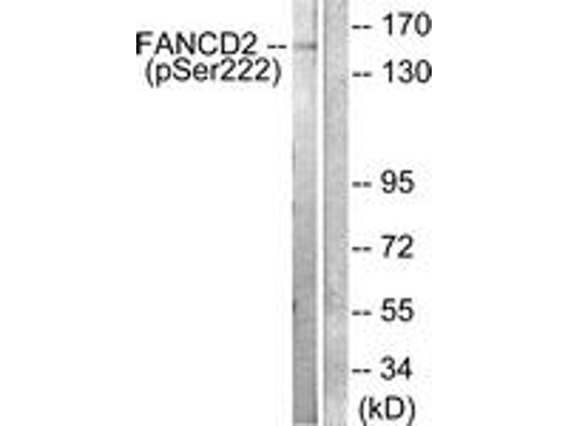 FANCD2 (Phospho-Ser222) Antibody detects endogenous levels of FANCD2 only when phosphorylated at Ser222.