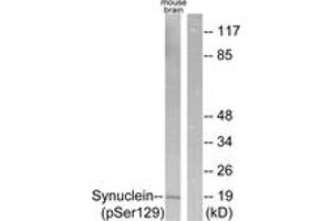 Synuclein (Phospho-Ser129) Antibody detects endogenous levels of Synuclein only when phosphorylated at Ser129.