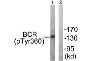 Bcr (Phospho-Tyr360) Antibody detects endogenous levels of Bcr only when phosphorylated at Tyr360.