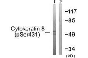 Keratin 8 (Phospho-Ser432) Antibody detects endogenous levels of Keratin 8 only when phosphorylated at Ser432.