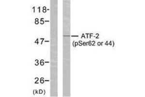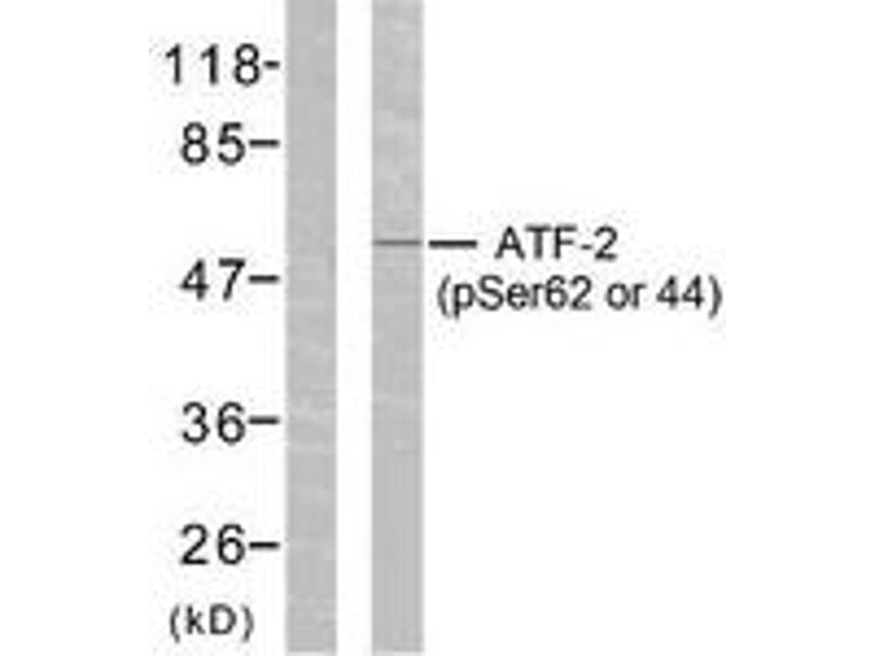ATF2 (Phospho-Ser62 or 44) Antibody detects endogenous levels of ATF2 only when phosphorylated at Ser62 or 44.