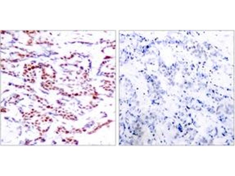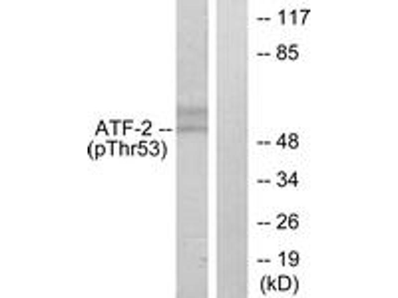 ATF2 (Phospho-Thr71 or 53) Antibody detects endogenous levels of ATF2 only when phosphorylated at Thr71 or 53.