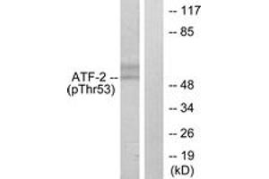 - The antiserum was produced against synthesized peptide derived from human ATF2 around the phosphorylation site of Thr71 or 53.