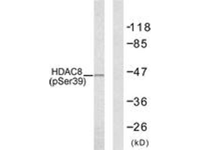 HDAC8 (Phospho-Ser39) Antibody detects endogenous levels of HDAC8 only when phosphorylated at Ser39.