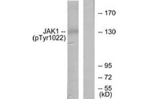 JAK1 (Phospho-Tyr1022) Antibody detects endogenous levels of JAK1 only when phosphorylated at Tyr1022.