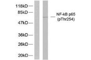 NF-kappaB p65 (Phospho-Thr254) Antibody detects endogenous levels of NF-kappaB p65 only when phosphorylated at Thr254.
