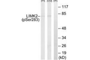 LIMK2 (Phospho-Ser283) Antibody detects endogenous levels of LIMK2 only when phosphorylated at Ser283.