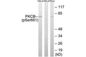 PKCB (Phospho-Ser661) Antibody detects endogenous levels of PKCB only when phosphorylated at Ser661.