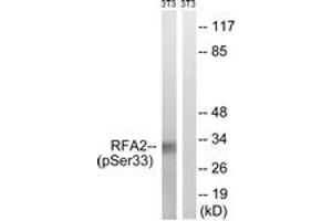 RFA2 (Phospho-Ser33) Antibody detects endogenous levels of RFA2 only when phosphorylated at Ser33.