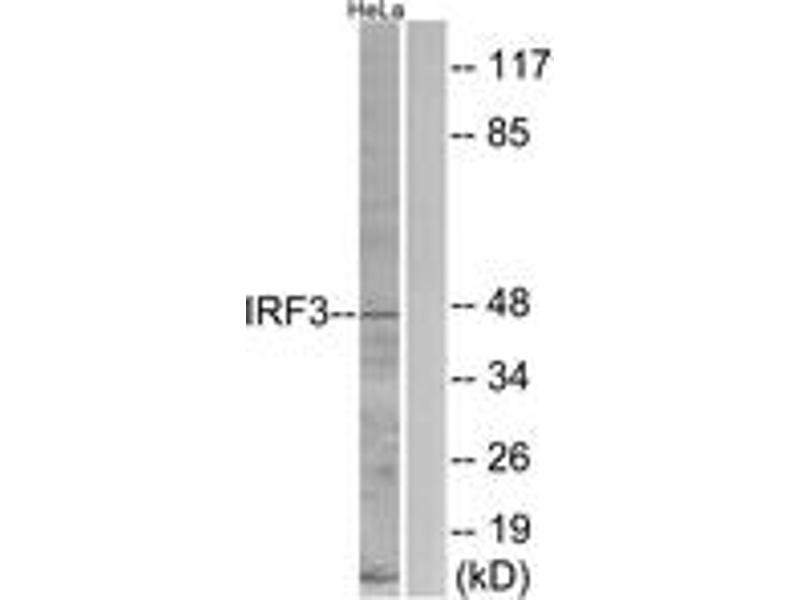 IRF3 Antibody detects endogenous levels of total IRF3 protein.