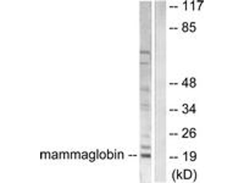 Mammaglobin Antibody detects endogenous levels of total Mammaglobin protein.
