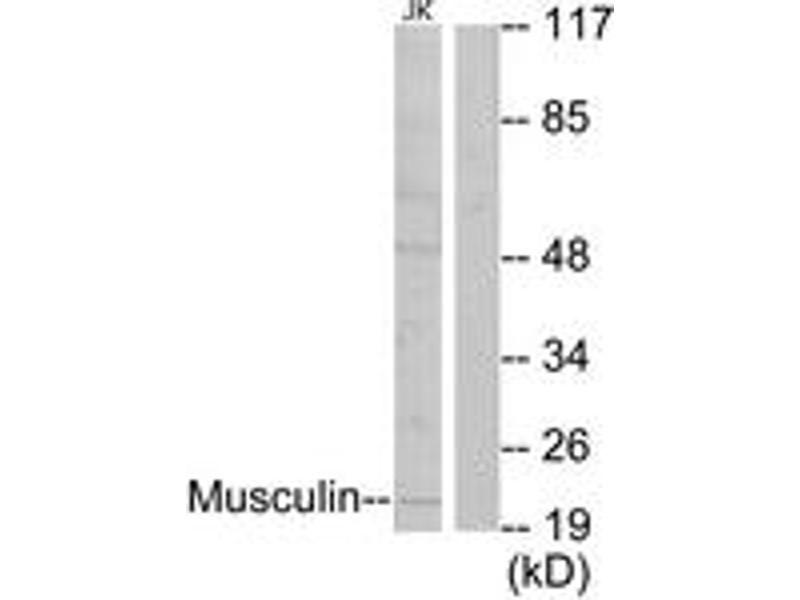 - The antiserum was produced against synthesized peptide derived from human Musculin.
