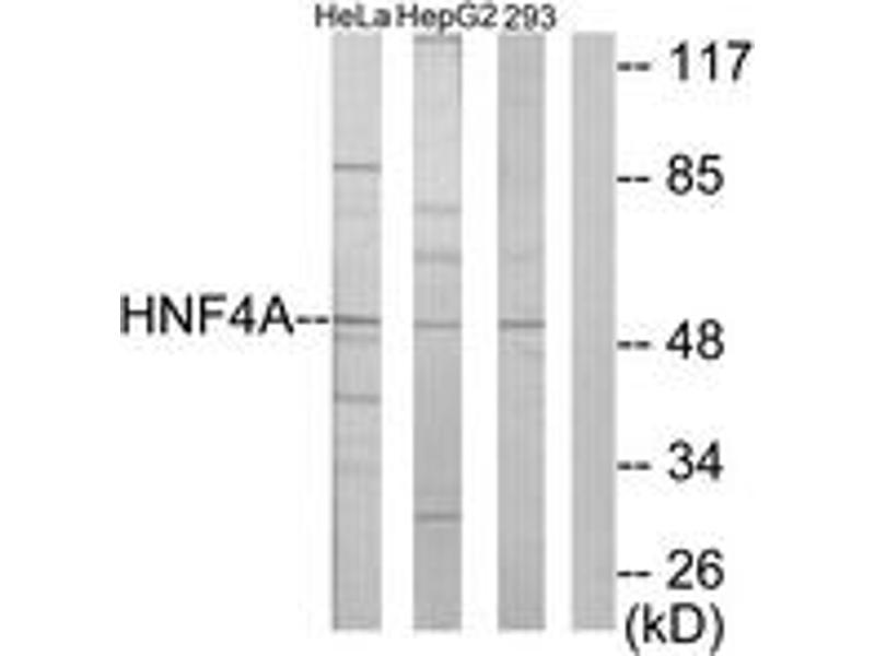 - The antiserum was produced against synthesized peptide derived from human HNF4 alpha/gamma.