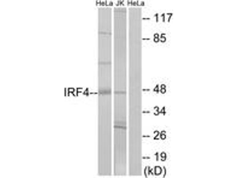 - The antiserum was produced against synthesized peptide derived from human IRF4.