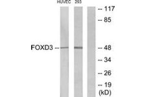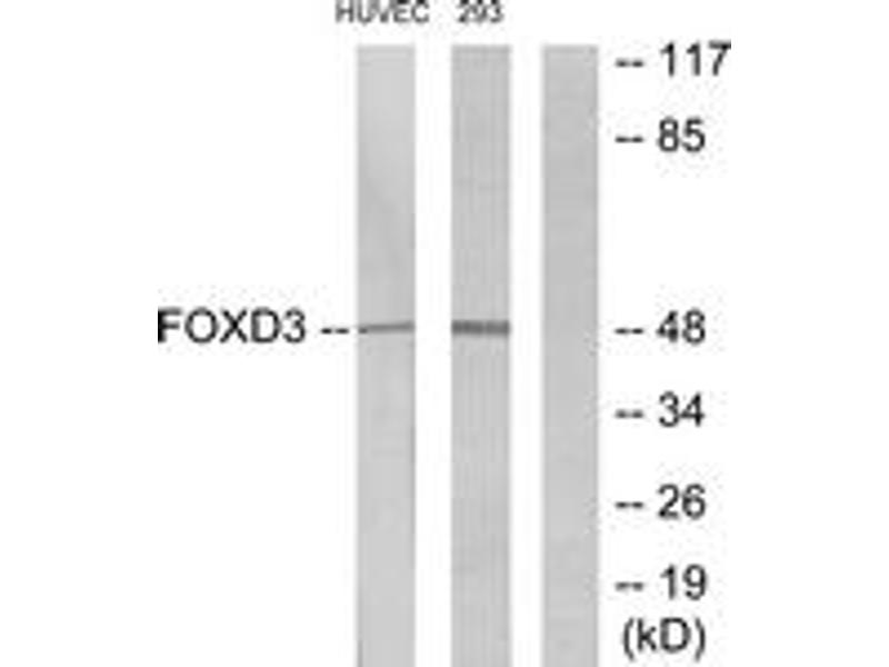 FOXD3 Antibody detects endogenous levels of total FOXD3 protein.