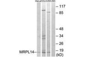 MRPL14 Antibody detects endogenous levels of total MRPL14 protein.