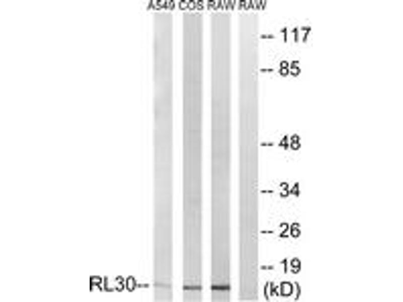 - The antiserum was produced against synthesized peptide derived from human RPL30.