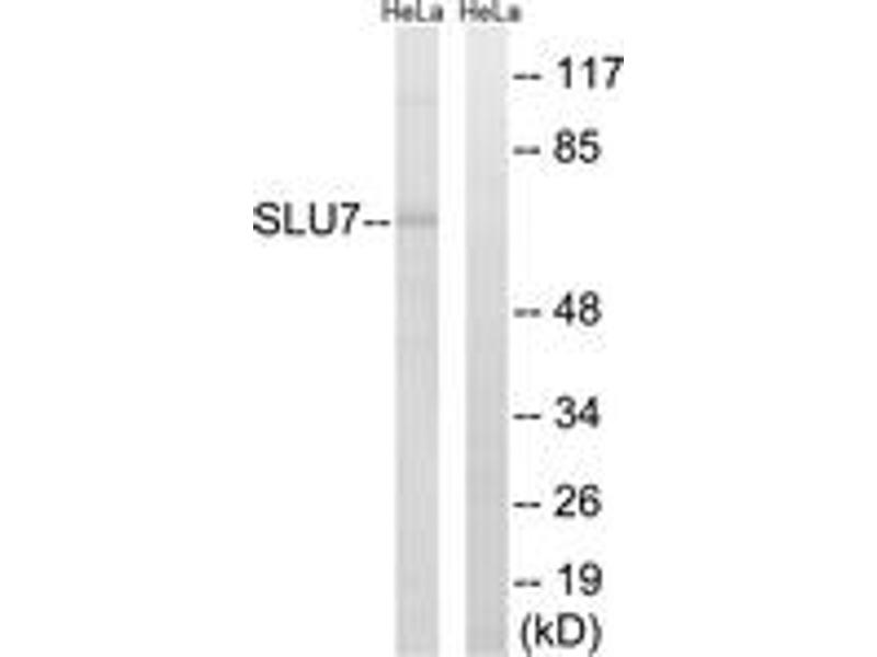 - The antiserum was produced against synthesized peptide derived from human SLU7.
