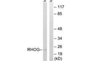 - The antiserum was produced against synthesized peptide derived from human RHOG.