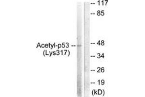 p53 (Acetyl-Lys317) Antibody detects endogenous levels of total p53 protein only when acetylated at Lys317.