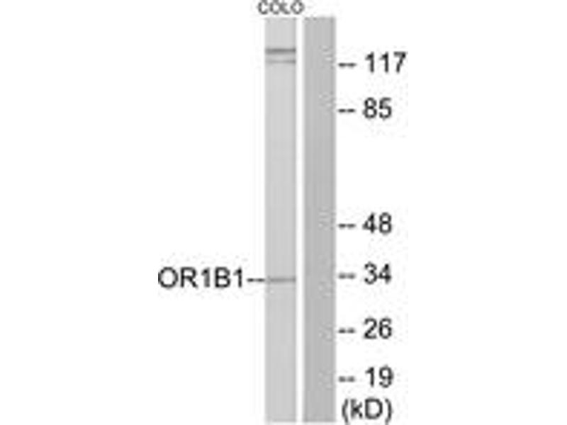 - The antiserum was produced against synthesized peptide derived from human OR1B1.