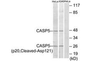 Caspase 5 (p20,Cleaved-Asp121) Antibody detects endogenous levels of fragment of activated Caspase 5 resulting from cleavage adjacent to Asp121.