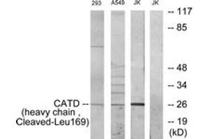 CATD (heavy chain,Cleaved-Leu169) Antibody detects endogenous levels of fragment of activated CATD resulting from cleavage adjacent to Leu169.