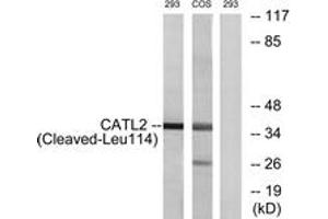 CATL2 (Cleaved-Leu114) Antibody detects endogenous levels of fragment of activated CATL2 resulting from cleavage adjacent to Leu114.