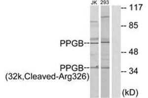 PPGB (32k,Cleaved-Arg326) Antibody detects endogenous levels of fragment of activated PPGB resulting from cleavage adjacent to Arg326.