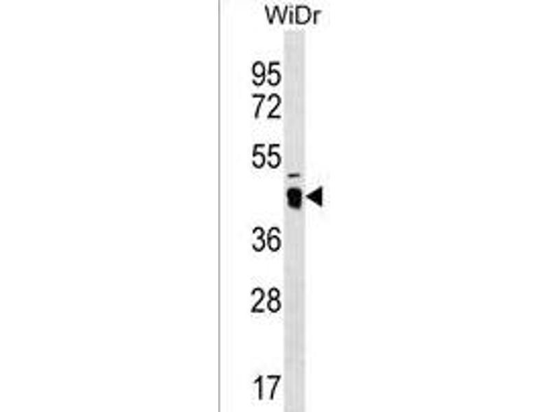 - This antibody is purified through a protein A column, followed by peptide affinity purification.