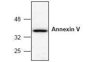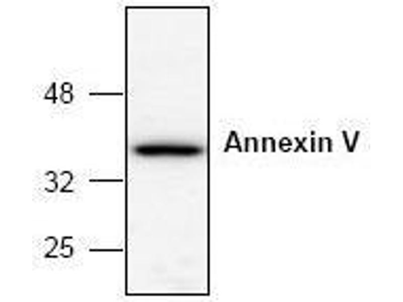 - The antibody detects Annexin V.