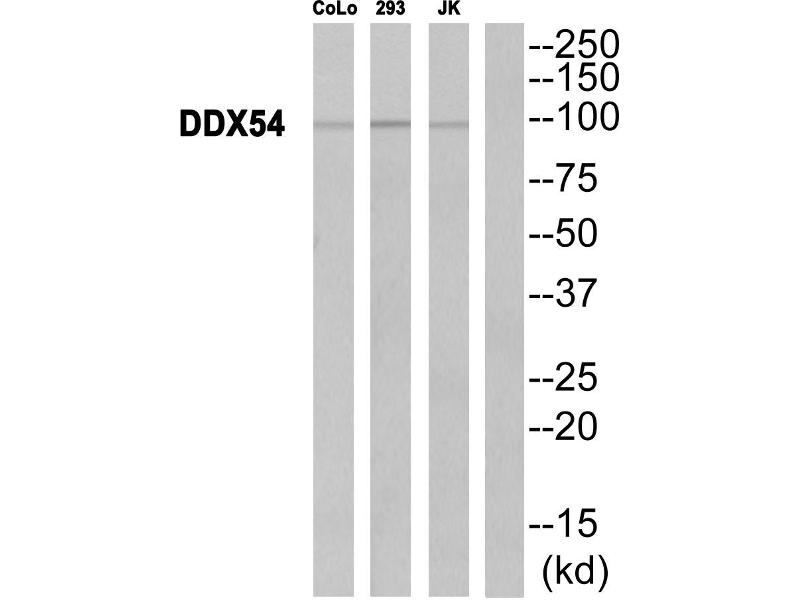 - The antiserum was produced against synthesized peptide derived from internal of human DDX54.